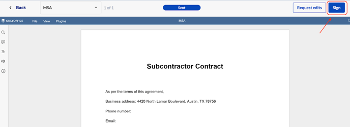 - Once the contract has been successfully signed, you will be sent back to the contract and it will now show as in Signed status.