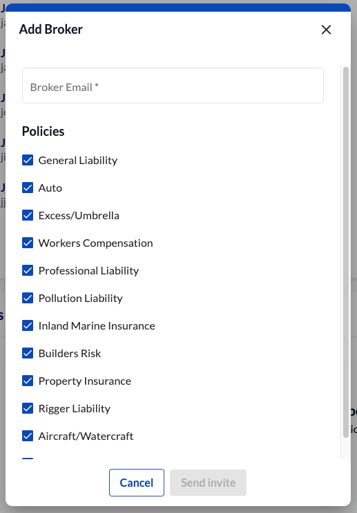 - Enter your insurance broker's email address and click Send invite.